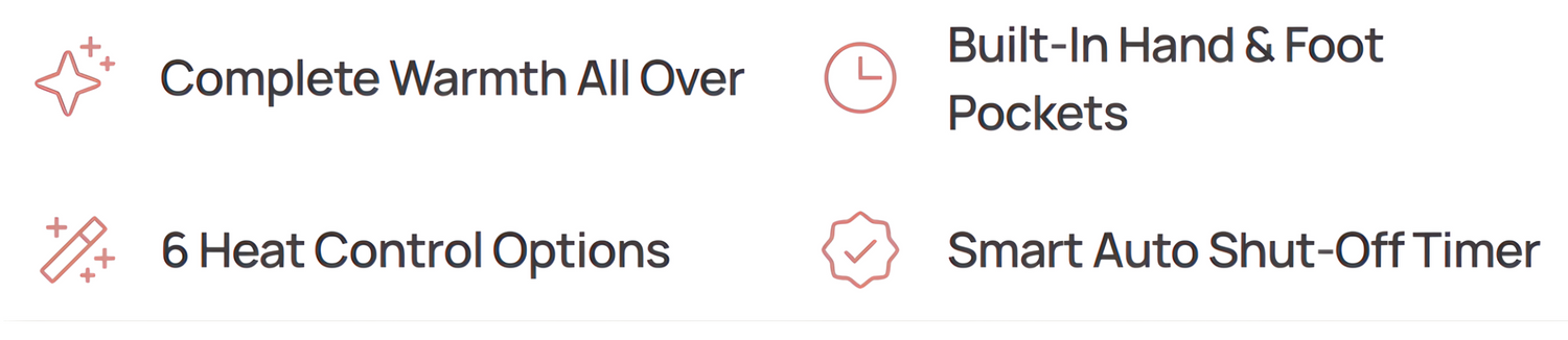 It begins warming withinjust a couple of minutes, and reaches your chosen heat level quickly so you feel cozy almost instantly.